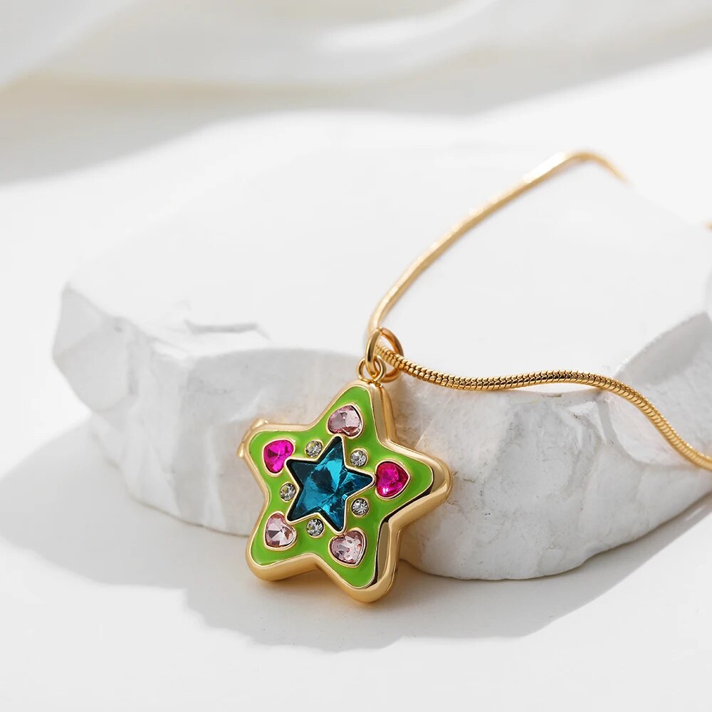 The heart and star design is also very appealing. It's delicate and feminine, and I think it would complement a variety of outfits. Plus, the enamel color photo frame adds a touch of vintage charm. I'm seriously considering purchasing it!